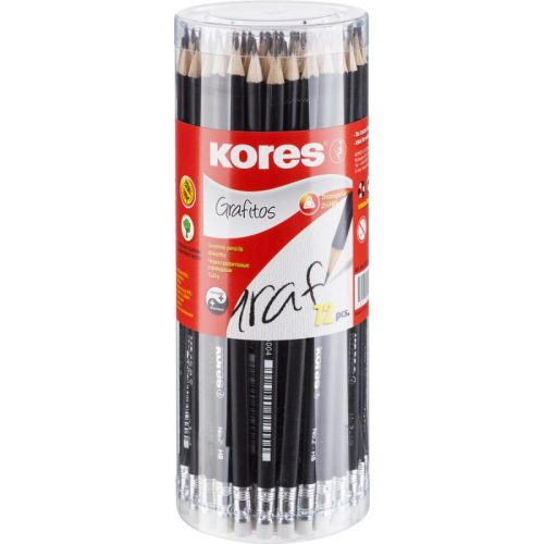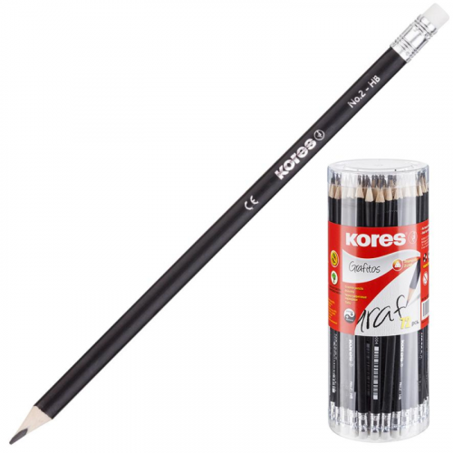 Набор чернографитных карандашей Kores 92372 в трехгранном деревянном корпусе. В наборе 72 штуки, упакованных в пластиковую тубу. Простые карандаши с ластиком поставляются заточенными. Твердость грифеля HB. Длина карандаша 185 мм.