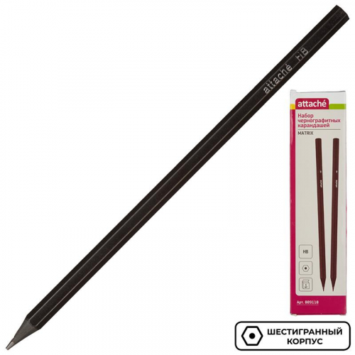 Карандаш Attache первый помощник для выполнения проектно-конструкторских работ, позволяет сделать легкий набросок, быстрый стремительный рисунок или нарисовать полноценную картину. Карандаш изготовлен из пластика, имеет шестигранный корпуса. Без ластика. Карандаш легко точится и не крошится. Поставляется заточенным. Твердость грифеля - НB. Цвет корпуса - черный.