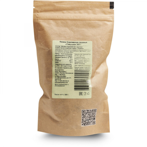 Финики Семушка Королевские 300 г. Королевские финики - прекрасная альтернатива сладостям. Выращиваются плоды в солнечном Израиле. В королевские финиках насчитывают более 20 видов аминокислот, способствующих улучшению процесса пищеварения, они легко усваивается организмом и наделяют его необходимой энергией. Пищевая ценность на 100 г продукта: Белки - 2,5; Жиры - 0; Углеводы - 69. Энергетическая ценность на 100 г продукта: 291 ккал. Условия хранения: Хранить при температуре от +5°С до +20°С при относительной влажности не более 70%. Страна производства: Россия.