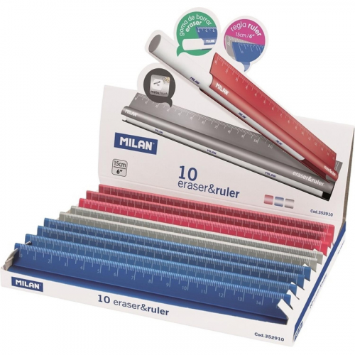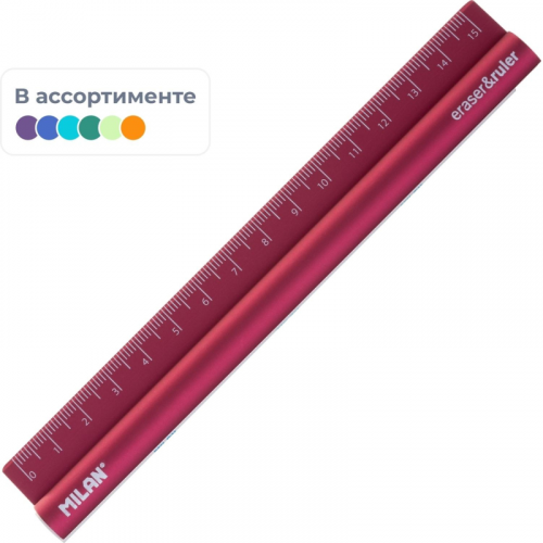 Линейка Milan 15 см металлическая в ассортименте с ластиком Линейка является незаменимым помощником при чертежных работах в образовательных учреждениях и офисах, а также дома. Линейка Milan 15 см. Выполнена из металла. Ширина линейки: 2.5 см. Деления наносятся с использованием специальных чернил для оптимальной стойкости. Л егко читать: наглядные индикаторы. Цвета в ассортименте. Внимание! Товар поставляется в нескольких вариантах цвета/дизайна (без возможности выбора).