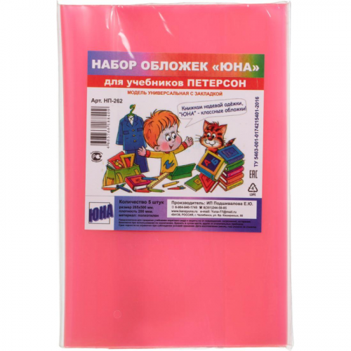 Набор обложек для учебников 265x500 мм 200 мкм (5 штук в упаковке) Набор обложек предназначен для защиты учебников от пыли, влаги и механических повреждений. Использование обложек помогает сохранить аккуратный внешний вид в течение всего учебного года. Изготовлены из прозрачного полиэтилена плотностью 200 мкм. Все обложки в упаковке одного цвета, но цвет в ассортименте (без возможности выбора конкретного цвета). Благодаря наличию регулируемого по ширине второго клапана, обложки удобно использовать с учебниками разной ширины. Размер каждой обложки - 265x500 мм, в упаковке 5 штук.