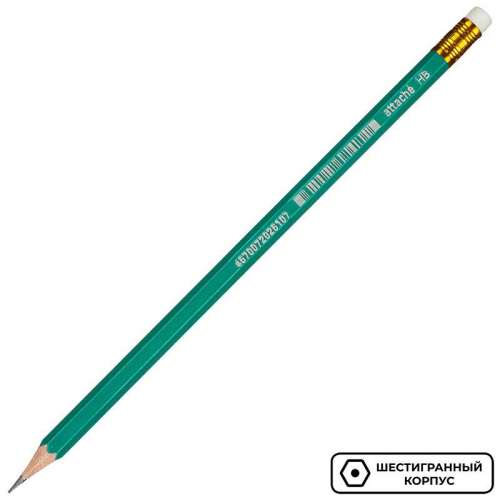 Карандаш чернографитный Attache Economy первый помощник для выполнения проектно-конструкторских работ, позволяет сделать легкий набросок, быстрый стремительный рисунок или нарисовать полноценную картину. Шестигранный корпус карандаша изготовлен из пластика, оснащен ластиком. Карандаш легко точится и не крошится. Поставляется заточенным. Твердость грифеля - НB. Цвет корпуса - зеленый.