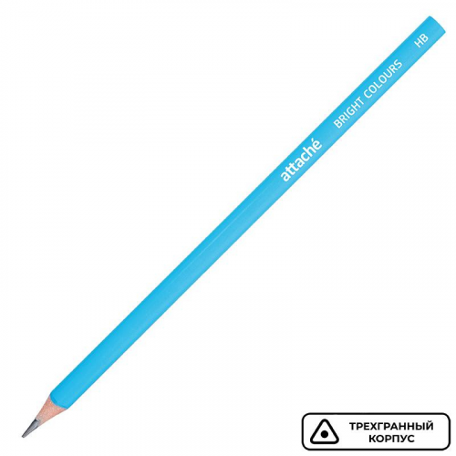 Карандаш чернографитный Attache в голубом пластиковом трехгранном корпусе. Поставляется заточенным, без ластика. Твердость - НВ. Материал ствола - полистирол. Длина стержня - 173-175 мм. Цвет стержня - черный. Диаметр грифеля - 1,8 мм.