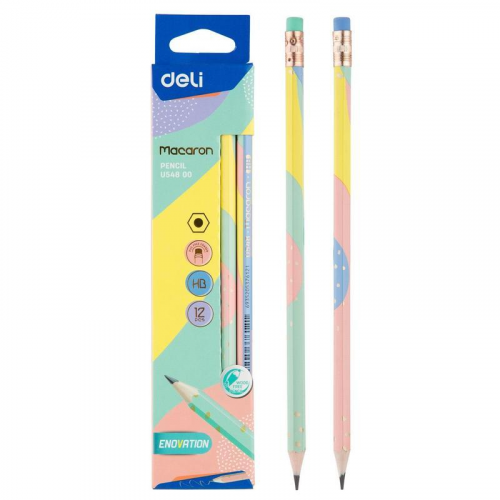 Чернографитный карандаш бренда Deli принадлежит серии Macaron, которая характеризуется нежными пастельными цветами. Шестигранный корпус карандаша изготовлен из пластика, не образует острых краев в случае разлома. Карандаш легко точится и не крошится. Поставляется заточенным и имеет ластик. Твердость грифеля - НB. Внимание! Товар поставляется в нескольких вариантах цвета/дизайна (без возможности выбора).