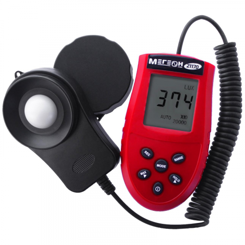 Люксметр с функцией записи Мегеон 21170 — портативный измеритель освещенности Мегеон 21170 с выносным фотодатчиком. Люксметр отличается высокой надежностью и точностью, а также неприхотливостью к условиям эксплуатации. Прибор Мегеон 21170 имеет широкий рабочий диапазон с функцией автоматической подстройки, который существенно упрощает проведение измерений. При необходимости, пользователь может вручную установить необходимый интервал измерений. Быстрый отклик, мгновенный результат измерения. Помимо измерения минимумов и максимумов люксметр обладает очень удобной функцией записи результатов измерений в память прибора. Представленный прибор отлично подойдет для измерения энергии видимого света в различных помещениях и зданиях.Особенности:Автоматическая установка необходимого диапазона измеренийМоментальный откликОтображение минимального и максимального показателейВыбор единиц измерения Люкс/
