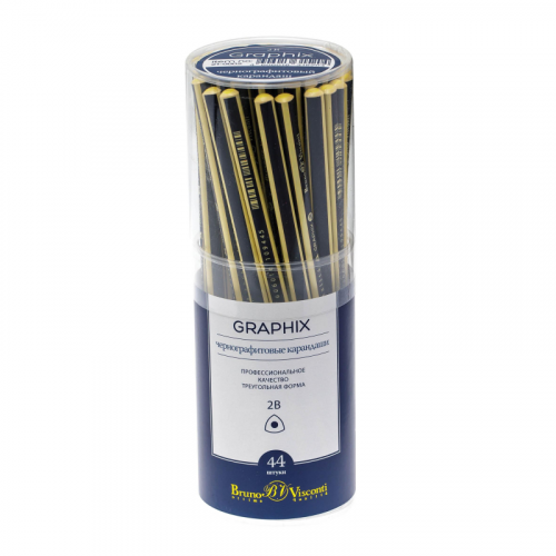 Карандаш "Graphix" от Bruno Visconti - удобный и универсальный помощник в решении чертежных и творческих задач, для работы в офисе и учебы: эргономичная трехгранная форма, степень жесткости HВ. Корпус произведен из термообработанной липы, ее вязкость и плотность позволяет надежно удерживать грифель и сохранять качество заточки на высоком уровне. Грифель отцентрован и проклеен, что гарантирует его ударопрочность при падении карандаша.