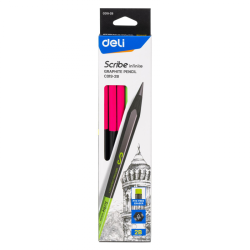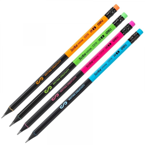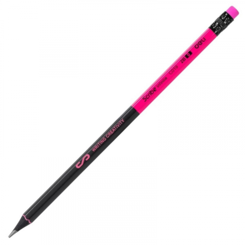 Карандаш чернографитный Deli Scribe с ластиком обеспечивает легкое, мягкое и комфортное письмо. Карандаш подходит для рисования, где он необходим как основа всего рисунка, перед тем как применять цветные карандаши или фломастеры. Карандаш в красивом дизайне невероятно обрадует каждого покупателя. Эргономичный шестигранный деревянный корпус предотвращает соскальзывание пальцев при письме. Легко затачивается и не ломается при падении. Высококачественный грифель сделан из мелко дисперсионного графита и тщательно очищен от примесей. За счет этого штриховка получается равномерной и четкой. Шестигранная форма развивает умение правильно держать, а также не дает карандашу скатываться со стола. Простой карандаш легко найти, если он упадет со стола и с той же легкостью обнаружить его в рюкзаке учащегося. Простой карандаш с ластиком поставляется заточенным и выполнен в 4-х ярких тонах: оранжевом, розовом, зеленом, синем. Ластик без ПВХ, нетоксичен, в цвет корпуса. Такой деревянный простой карандаш Deli для письма и графических работ будет уместна на любом учебном или офисном столе. Внимание! Товар поставляется в нескольких вариантах цвета/дизайна (без возможности выбора).