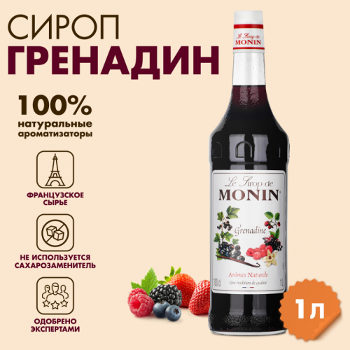 Сироп Monin Гренадинэто сладкий сироп соблазнительного рубиново-красного цвета, которая пригодится каждому гурману. Его название произошло от французского слова grenade, что значит гранат. Когда-то гренадиновый сироп действительно делали только из граната, однако сегодня для этого используется сок также других плодов и ягод. В изысканном аромате сиропа чувствуется тонкий шлейф ванили, а его кисло-сладкий вкус прекрасно утоляет жажду. Благодаря высокой концентрации сироп Монин Гренадин можно использовать очень экономично. С его помощью Вы сможете разнообразить вкус кофе, холодного чая, десертов, блинчиков и мороженого, а также приготовить огромное количество алкогольных и безалкогольных коктейлей, лимонад и кондитерские изделия. Стеклянная бутылка в фирменном стиле с закручивающейся крышкой украсит любую кухню или бар. Пищевая ценность на 100 гр. продукта (не менее) белки - 0г, жиры - 0 г, в том числе полинасыщенные жирные кислоты - 0г, углеводы - 73,8 г, в том числе сахар (сахароза) - 73,8 г, соль - 0,03 г. Энергетическая ценность на 100 гр. продукта 299 Ккал/1249 кДж. Хранить в сухом месте, вдали от солнечных лучей при температуре от 10 до 30 градусов до истечения срока годности. Вскрытую бутылку хранить при температуре от 20 до 26 градусов не более 3-х месяцев вдали от солнечных лучей.Вес 1 кг. Страна производства: Россия.