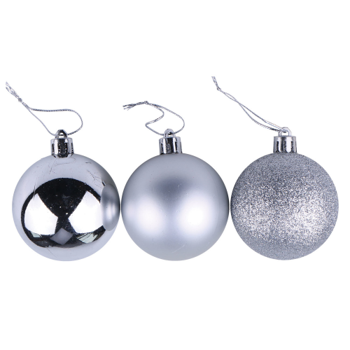 Елочные шары - традиционное новогоднее украшение для елки и интерьера Вашего дома. Элегантный серебристый цвет в сочетании с отделкой разной фактуры создадут атмосферу праздника и волшебства. Все шары изготовлены из высококачественного пластика.