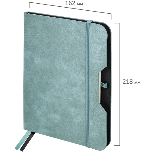 Твердая обложка стилизована под "гладкую кожу". Специальное покрытие "SoftTouch" с повышенными тактильными свойствами придает обложке мягкий, бархатистый эффект. Имеет закругленные уголки, подходит для горячего тиснения и имеет резинку-фиксатор, благодаря чему не раскроется в сумке или портфеле и листы не помнутся. 80 листов позволят зафиксировать большой объем информации. Линовка блока в клетку дает возможность аккуратно заполнить цифровые значения, а также нанести чертежные зарисовки. Внутренний блок выполнен из офсета цвета слоновой кости плотностью 70 г/м2 и крепится к обложке с помощью книжного переплета. Дополнением являются две закладки-ляссе, с помощью которых при необходимости можно быстро открыть или зафиксировать нужную страницу, а также держатель для ручки. Формат блокнота А5 (162х218 мм) позволит владельцу поместить его в кейс или сумку малых габаритов.