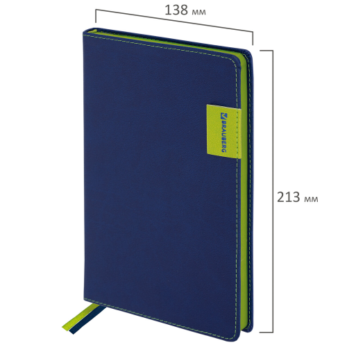 Внутренний блок включает 136 листов белой бумаги плотностью 70 г/м2. Каждая страничка имеет перфорированный угол. Благодаря стандартному формату А5 ежедневник удобно использовать как в офисе, так и на выездных деловых встречах. Интегральная обложка стилизована под гладкую кожу и прошита по периметру. Подходит для горячего тиснения. Срез и форзац ежедневника окрашены в контрастный цвет с обложкой, что придает ему особый шарм. Дополнением являются две закладки-ляссе, с помощью которых можно быстро открыть или зафиксировать ежедневник на нужной странице, а также держатель для ручки на контрасте с обложкой.