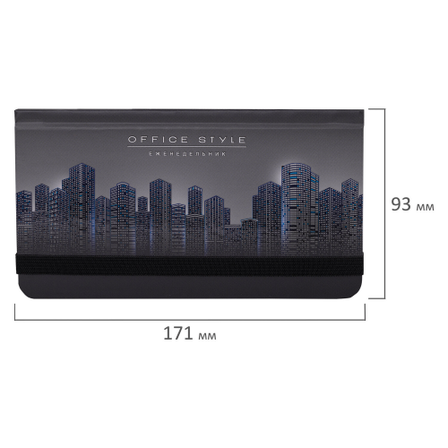 Еженедельник недатированный с резинкой (171х93 мм), BRAUBERG, твердый, УФ-ЛАК, 64 л., "Night City", 114575