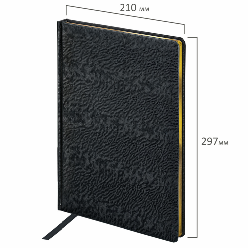 Внутренний блок включает 160 листов тонированной бумаги плотностью 70 г/м2. Каждая страничка имеет перфорированный угол. Благодаря большому формату А4 (210х297 мм) ежедневник удобно использовать как в офисе, так и на выездных деловых встречах.