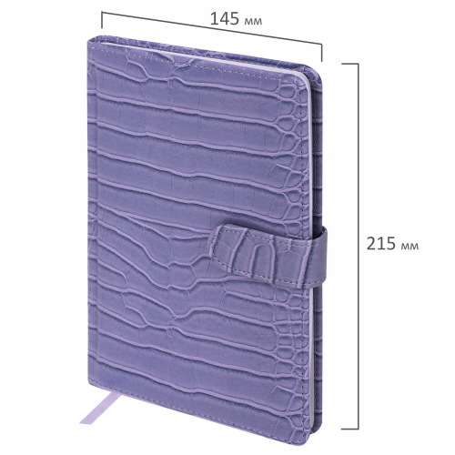 Внутренний блок включает 64 листа тонированной бумаги плотностью 70 г/м2. Благодаря стандартному формату А5 еженедельник удобно использовать как в офисе, так и на выездных деловых встречах. Твердая обложка, стилизованная под кожу крокодила, фиксируется магнитной застежкой, поэтому еженедельник не откроется в сумке или портфеле и страницы не помнутся. Подходит для горячего тиснения. Дополнением является закладка-ляссе, с помощью которой при необходимости можно быстро открыть еженедельник на нужной странице. Помимо прочего, еженедельник снабжен обширным справочным материалом. Выполнен в ярком сиреневом цвете.