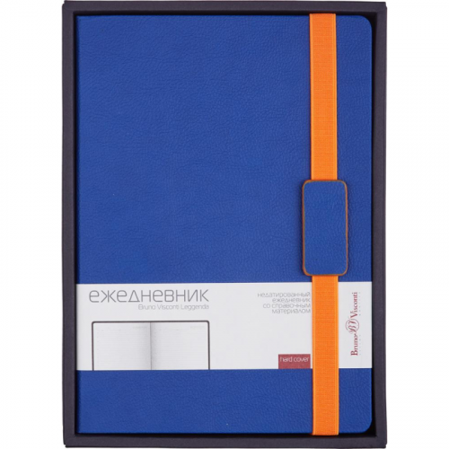 Ежедневник недатированный Bruno Visconti, цвет синий. Коллекция Leggenda. Формата B5 (A4-), размер изделия - 173x242 мм. Ежедневник из искусственной кожи классического синего цвета , особенно удобный для настольного использования. Для гибкой и износоустойчивой обложки выбран качественный материал с выраженным рельефом натуральной кожи. Широкая резинка с бегунком из термостойкого материала для персонализации. Возможно нанесение тиснения (блинтом, фольгой, шелкография, УФ-печать, лазерная гравировка шильда). Блок: недатированный, бумага бежевого цвета, офсет плотностью 70-90 г/кв.м., 136 листов (272 страницы), ляссе, закругленный угол обложки. Размер блока: 165x240 мм. Справочная информация включает: личные данные, часовые пояса, аэропорты Европы, межународные телефонные коды, размеры одежды, цифровые автомобильные коды России, Беларуси, Казахстана, Армении, штрих-коды, энергетическая и питательная ценность продуктов, расход калорий, формат бумаги, греческие буквы, национальные праздники, единицы измерения, страны мира, буквенные коды стран, термины международной торговли, давление, дни рождения и годовщины, поле для заметок. Поставляется в подарочной упаковке, ее размер - 185x260 мм.