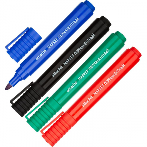 Особая нестираемая основа перманентного маркера Attache на спиртовой основе для бумаги, картона, дерева, стекла, фарфора, пластика, металла. Полулаковый маркер - это перманентный маркер со свойствами лакового. По виду чернила выглядят как перманентный маркер. В отличие от обычного перманента пишет и крепко держится на стекле, металле, пластике и других 'сложных' поверхностях. Устойчив к выцветанию. В набор входят 4 цвета: черный, синий, красный, зеленый. Цвет колпачка соответствует цвету чернил. Плотно закрывается колпачком, что предотвращает высыхание наконечника и чернил. Круглый, эластичный наконечник обладает повышенной износостойкостью и обеспечивает экономный расход чернил. Отличается продленной линией письма. Изделие не перезаправляется. Толщина линии письма - 2.5 мм в зависимости от угла наклона. Длина линии письма около 100 метров. Моментально высыхает. Круглая форма корпуса из экологичного пластика, созданного из переработанного сырья, что позволяет бережно относиться к природе, колпачок снабжен клипом. Набор маркеров перманентных Attache должен быть всегда под рукой!