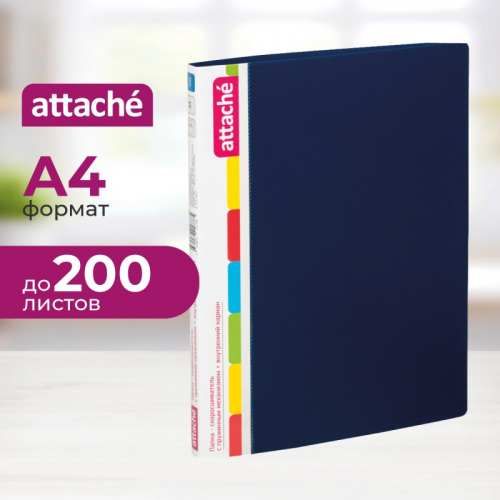 Скоросшиватель с пружинным механизмом Attache используется для хранения различного рода документации, для ведения документооборота, систематизации договоров, других важных бумаг. Формат А4. Папка изготовлена из пропилена толщиной 0,7 мм. Имеет прозрачный карман на левой внутренней обложке для документов. Ширина корешка - 16 мм, вместимость - 200 листов стандартной плотности. Цвет - синий. 1.положите скоросшиватель на горизонтальную поверхность, откройте его; 2.большим и указательным пальцами придайте пружинам вертикальное положение; 3.снимите планку со штырей движением вверх; 4.поместите перфорированные листы внутрь папки на штырьки-пружины; 5.поверх листов разместите ранее снятую планку, прижмите ее к бумаге; 6.с помощью большого и указательного пальцев разведите штырьки-пружины в противоположные направления.