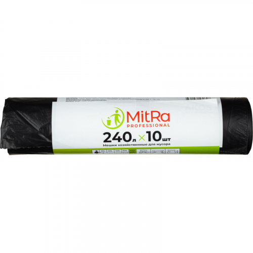 Мешки для мусора Mitra Professional 240 л черные (ПВД, 30 мкм). Назначение: мусорные пакеты повышенной прочности и большого размера для утилизации большого объема легкого бытового мусора. Отлично подойдут для дома, офиса, производственных помещений, отелей, ресторанов. Пакеты для мусора разделены качественной перфорацией, не повреждающей пакет в момент отрыва от рулона. Изготовлены из полиэтилена высокого давления (ПВД). Не являются ароматизированными и биоразлагаемыми. Упакованы по 10 пакетов в рулоне.