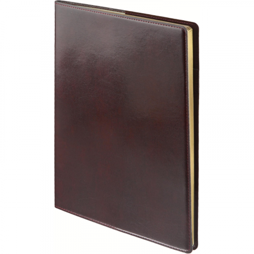 Еженедельник недатированный Bruno Visconti Profy натуральная кожа А4 64 листа коричневый (золотистый обрез) Еженедельник-портфолио серии Profy - необходимый инструмент на столе делового человека, стремящегося к карьерному и личностному росту. Мягкая обложка в универсальном офисном стиле выполнена из высококачественной рециклированной коричневой натуральной кожи, подходит для любых видов полиграфического тиснения. Матовая поверхность кожи подчёркнута золотым металлизированным обрезом. По периметру обложки проходит строчка нитками в тон. Еженедельник со сменным блоком выпускается в настольном формате А4 (размер: 210x290 мм) и состоит из 128 страниц. Для них использована бежевая бумага высшего сорта, обладающая плотностью 70-90 г/кв. м. На 18 страницах размещена справочная информация с полезными сведениями из различных областей. Под обложкой расположена кожаная петля для ручки, поэтому еженедельник удобно брать в поездки. Есть специальный карман для хранения визиток.