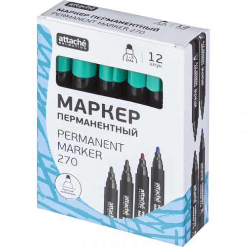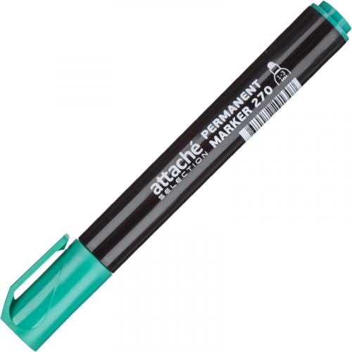 Маркер перманентный Attache Selection в прочном пластиковом корпусе. Нестираемые светостойкие чернила на спиртовой основе, не содержат ксилол и толуол. Идеально подходит для надписей на металле, пластике, дереве и картоне, а также резине, стекле, камне, кирпиче, бетоне, пленке. Прочный акриловый наконечник круглой формы позволяет провести линию толщиной от 1 до 3 мм. Цвет - зеленый. Длина линии письма - 500 м.