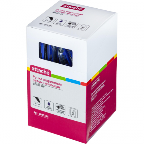 Автоматическая шариковая ручка Attache Spirit GP - это яркий и запоминающийся дизайн! Модель выполнена в эргономичном пластиковом прозрачном корпусе. Стильный дизайн ручки дополняет клип, позволяющий закрепить ручку в кармане или тетради для записей. Резиновая манжетка способствует надежному захвату пальцев и препятствует выскальзыванию. Сменный стержень длиной 118 мм заправлен масляными чернилами синего цвета, снабжен игольчатым наконечником диаметром 0.5 мм, который обеспечивает сверхтонкую линию письма 0.3 мм. Ручка обеспечивает непревзойденно легкое и мягкое письмо, яркие и насыщенные линии.