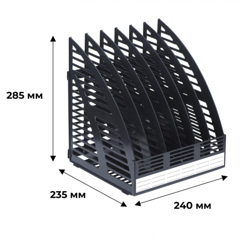 Вертикальный накопитель Attache выполнен из пластика черного цвета. Минималистичный дизайн лотка создаст на Вашем рабочем месте ощущение легкости. Не занимает много места на рабочем столе. Позволяет удобно хранить документы и печатную продукцию формата А4. Имеет 6 отделений. Размеры изделия (ДxШxВ): 235x240x285 мм. Внутренняя ширина: 240 мм, внешняя ширина по выступающим деталям: 252 мм. Вес: 790 г. Конструкция требует самостоятельной сборки, что позволяет регулировать ширину отделения кратно 40 мм. Съемный передний бортик. Возможно крепление на вертикальных плоскостях. Обладает устойчивой конструкцией, благодаря которой является удобным для хранения большого объема документов. Этикетки для маркировки входят в комплект поставки
