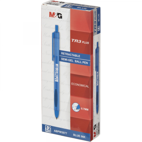 Автоматическая шариковая ручка M&G TR3 Plus в традиционном пластиковом корпусе. Модель имеет автоматический механизм, эргономичный трехгранный корпус. Стержень снабжен игольчатым наконечником и заправлен масляными чернилами синего цвета. Диаметр пишущего узла 0,7 мм создает тонкую линию письма, равную 0,5 мм.