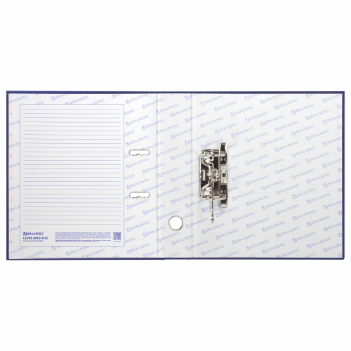 Папка формата А4 с вертикальной ориентацией изготовлена из высококачественного износоустойчивого картона с ПВХ покрытием синего цвета. Ширина корешка в 90 мм позволяет разместить до 750 листов. Прорези для колец на внешней крышке позволяют оставаться папке закрытой даже при большом количестве бумаг, а надежный арочный механизм легко справляется с ежедневными нагрузками. Корешок папки снабжен этикеткой для маркировки содержимого, что позволяет структурировать информацию.