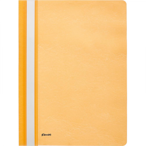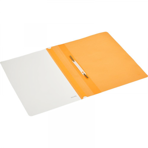 Скоросшиватель используется для хранения различного рода документации, для ведения документооборота, систематизации договоров, других важных бумаг. Папка изготовлена из гладкого пластика. Толщина верхнего прозрачного листа - 130 мкм, нижнего цветного листа - 180 мкм. С прозрачной верхней обложкой. На лицевой стороне находится карман с белым бумажной полосой для указания содержания, вместимость - 100 листов стандартной плотности. Цвет- оранжевый