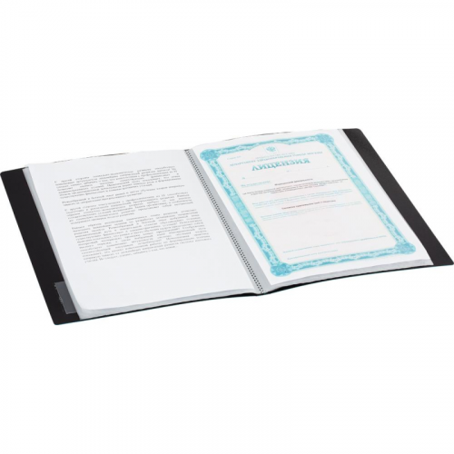 Папка с файлами Комус формата А4 изготовлена из полипропилена толщиной 0,8 мм двух цветов: голубого (внешняя поверхность) и черного (внутренняя поверхность). Имеет 20 несъемных прозрачных вкладышей для удобного хранения и демонстрации документов. В каждом из них можно разместить по два листа. Ширина корешка составляет 15 мм. Файловая папка дополнительно оснащена внутренним карманом для компакт-дисков и визитных карточек. Плотность файлов 30 мкм.