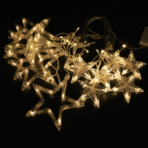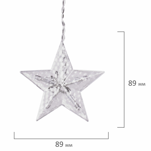 Рабочая часть гирлянды состоит из трех частей и включает 108 светодиодов: первая - включает в себя 30 светодиодов, которые не имеют декоративных колпачков, и расположены вдоль нитей, свисающих вниз. Вторая часть представляет собой 6 светодиодных фигур в форме большой пятиконечной звезды диаметром 14,5 см, выполненных из пластика, с 8-ю светодиодами внутри. Третья часть - это 6 светодиодных фигур в виде маленькой пятиконечной звезды диаметром 9 см, выполненных из пластика с 5-ю светодиодами внутри.