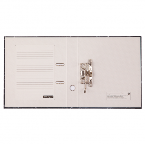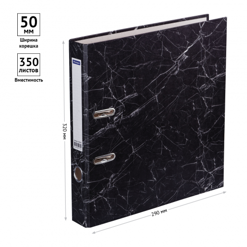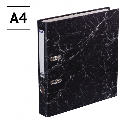 Папка-регистратор для хранения документов, металлический арочный механизм, покрытие офсетная бумага. На корешке этикетка для записей. Формат А4+. Ширина корешка 50 мм. Цвет «черный мрамор».
