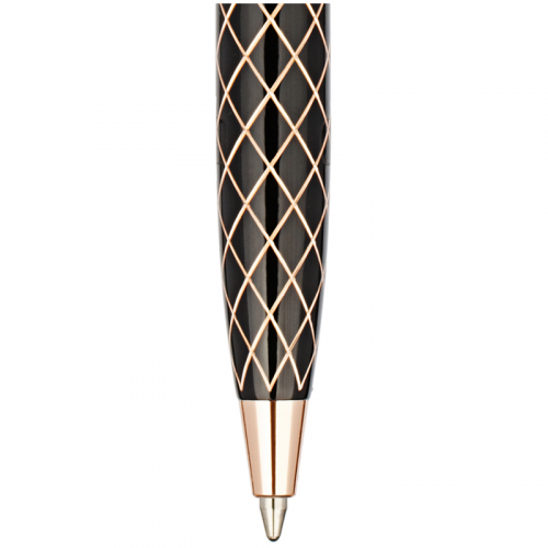 Delucci Evento – это роскошная шариковая ручка с синими чернилами, которую оценит любой человек. В ней сочетаются строгость и оригинальность. Классический черный корпус украшен элегантной гравировкой золотом. Клип сделан из нержавеющей стали, он позволяет фиксировать ручку на ежедневниках, блокнотах и карманах одежды. Delucci Evento оснащена поворотным механизмом, внутри которого расположен пишущий стержень диаметром 1 мм, который идеально подходит для быстрого стиля письма. Упакована в кожаный футляр.