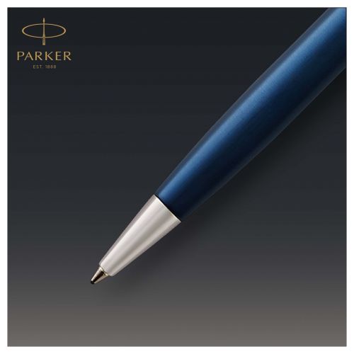 Шариковая ручка в корпусе из нержавеющей стали с глянцевым лаковым покрытием изысканного синего цвета и декоративными элементами, покрытыми палладием. ВНИМАНИЕ! С марта 2020г. подарочные коробки ручек ТМ Parker прекратили комплектоваться лифлетами (листовками с гарантийным талоном).