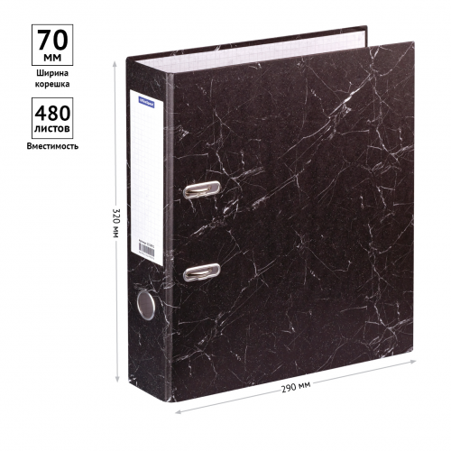 Папка-регистратор для хранения документов, металлический арочный механизм, покрытие офсетная бумага. Размер составляет 280*310*70мм. На корешке этикетка для записей. Формат А4+. Ширина корешка 70 мм. Цвет «чёрный мрамор». • Размер: 280*310*70мм; • Формат: А4; • Цвет: чёрный мрамор; • Ширина корешка: 70мм.
