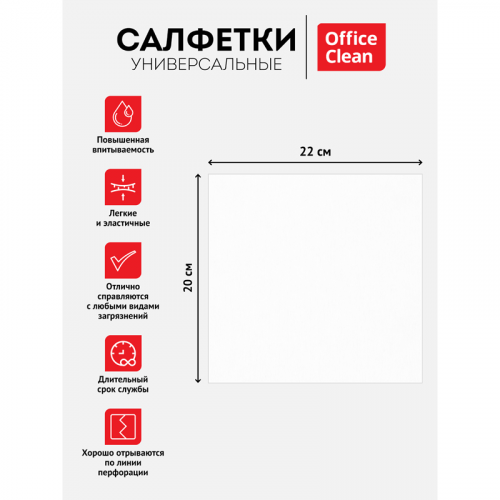 Салфетки универсальные OfficeClean в рулоне, для любых поверхностей, для сухой и влажной уборки, легко отрывается от рулона, мягко отжимается и быстро сохнет, впитывает масло, влагу, грязь