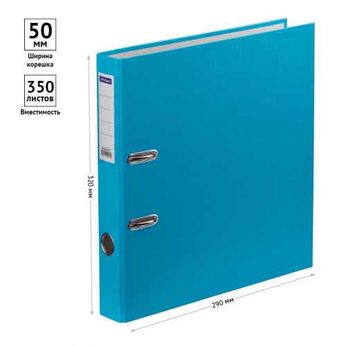 Папка-регистратор для хранения документов, металлический арочный механизм, покрытие бумвинил, карман на корешке папки. Размер составляет 280*310*50мм. Формат А4+. Ширина корешка 50 мм. Цвет бирюзовый. • Размер: 280*310*50мм; • Формат: А4; • Цвет: бирюзовый; • Вместимость в листах: 350шт; • Ширина корешка: 50мм.