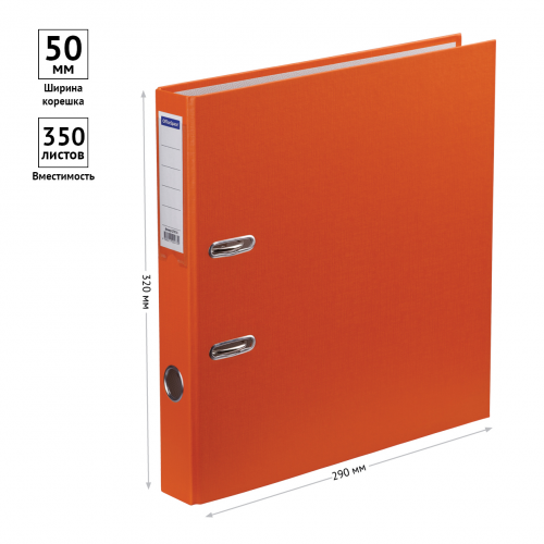 Папка-регистратор для хранения документов, металлический арочный механизм, покрытие бумвинил, карман на корешке папки. Размер составляет 280*310*50мм. Формат А4+. Ширина корешка 50 мм. Цвет оранжевый. • Размер: 280*310*50мм; • Формат: А4; • Цвет: оранженвый; • Вместимость в листах: 350шт; • Ширина корешка: 50мм.