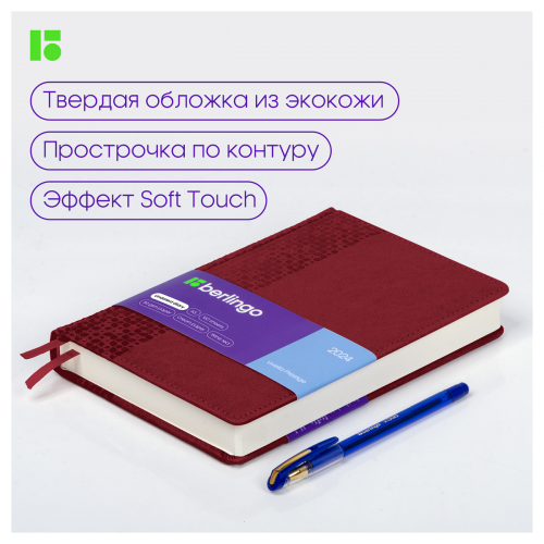 Перфорированные уголки, справочная информация и 2 закладки-ляссе сделают использование ежедневника Berlingo Vivella Prestige комфортным. Внутри располагаются географическая карта, отрывные заметки, бланки извещения о ДТП и справочные материалы. Недатированный ежедневник Berlingo подходит под персонализацию. 3 комплекта стикеров станут приятным подарком.