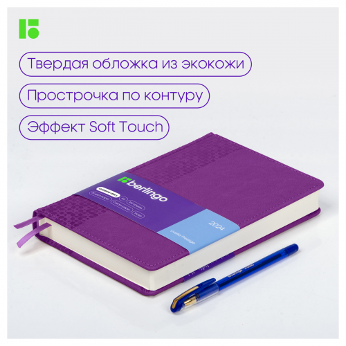 Стильный недатированный ежедневник Berlingo Vivella Prestige формата А5 с классической твердой матовой обложкой из высококачественной экокожи. Имиджевое тиснение на обложке добавляет интересную деталь в глубокий фиолетовый цвет. Внутренний блок состоит из 160 листов высококачественной белой бумаги повышенной плотности 80 г/м² с пантонной печатью в 2 краски. Недатированный ежедневник Berlingo Vivella Prestige представлен в размере 150 на 215 мм.