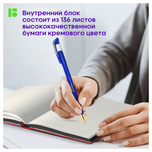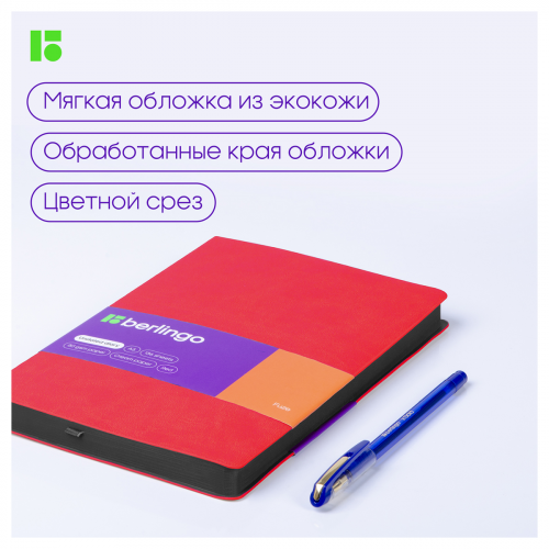 Стильный недатированный ежедневник Berlingo Fuze формата А5 с ультрамягкой обложкой из экокожи. Обложка красного цвета ярко контрастирует с черным срезом. Внутренний блок состоит из 136 листов высококачественной кремовой бумаги повышенной плотности 80 г/м² с пантонной печатью в 2 краски. Недатированный ежедневник Berlingo Fuze представлен в размере 143 на 210 мм.