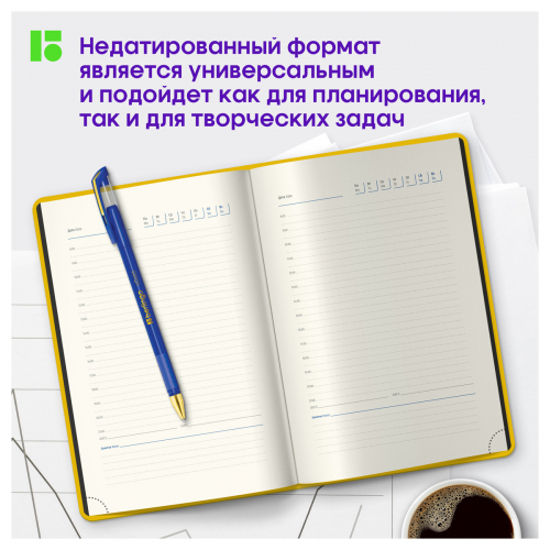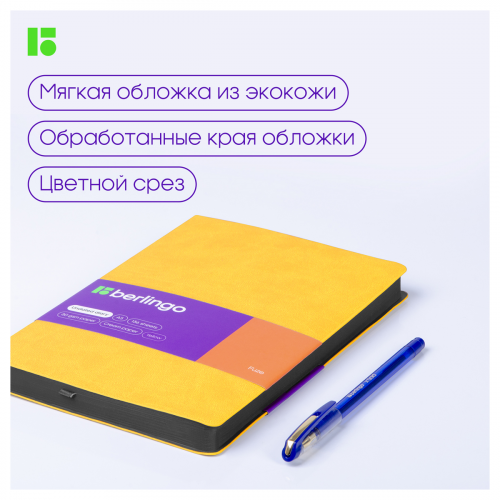 Стильный недатированный ежедневник Berlingo Fuze формата А5 с ультрамягкой обложкой из экокожи. Обложка желтого цвета ярко контрастирует с черным срезом. Внутренний блок состоит из 136 листов высококачественной кремовой бумаги повышенной плотности 80 г/м² с пантонной печатью в 2 краски. Недатированный ежедневник Berlingo Fuze представлен в размере 143 на 210 мм.