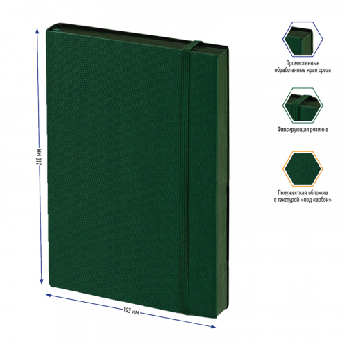 Изящный недатированный ежедневник Berlingo Western формата А5 с полужесткой обложкой из экокожи со стильным тиснением под карбон идеален для повседневного использования. Срез в цвет зеленой обложки приятно сочетается с общим оформлением ежедневника. Внутренний блок состоит из 136 листов высококачественной кремовой бумаги повышенной плотности 80 г/м² с пантонной печатью в 2 краски. Размер недатированного ежедневника – 143 на 210 мм.