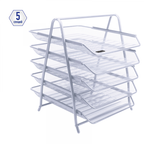 Стильный и практичный горизонтальный лоток с 5 секциями из высококачественного материала. Предназначен для удобного хранения бумажной продукции формата А4. Позволяет легко и эффективно организовать рабочее место. Лотки могут использоваться отдельно от опоры. Выдвижной механизм обеспечивает легкий доступ к содержимому лотков. Легкая и быстрая сборка. Серебристый цвет. Прочный корпус из высококачественного металла. Сетчатое исполнение предотвращает образование пыли внутри. Упаковка в картонную лакированную коробку.