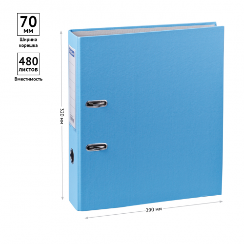 Папка-регистратор для хранения документов, металлический арочный механизм, покрытие бумвинил, карман на корешке папки. Формат А4+. Размер составляет 285*320*70мм. Ширина корешка 70 мм. Цвет голубой.