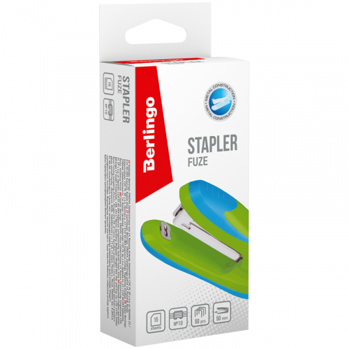 Стильный канцелярский степлер Berlingo Fuze отлично подходит для ежедневного использования на рабочем месте. Степлер вмещает 50 скоб размером №10, имеет 1 тип скрепления. Сшивает до 15 листов. Глубина захвата – 50 мм.