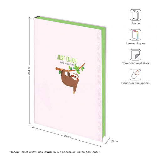 Ежедневник Greenwich Line Vision Just enjoy формата А5 обладает ультрамягкой двухслойной обложкой из высококачественной экокожи. Общий дизайн дополняет срез, отделанный фольгой золотого цвета. Ежедневник недатирован и имеет 136 листов, страницы которого созданы из высококачественной кремовой бумаги повышенной плотности 80 г/м2 с пантонной печатью в 2 краски. Изделие представлено в размере 143 на 210 мм.