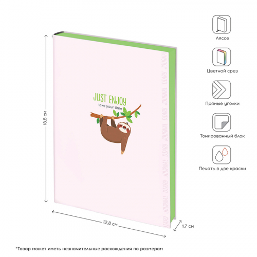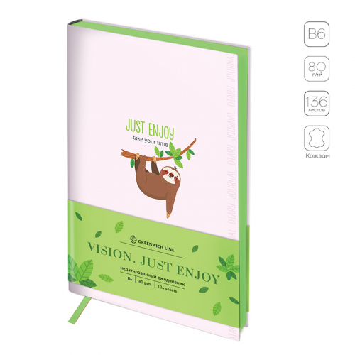 Стильный ежедневник Greenwich Line Just Enjoy серии Vision формата B6 с мягкой обложкой из высококачественной экокожи и модным принтом станет идеальным атрибутом для планирования. Срез блока окрашен в контрастный обложке цвет. Внутренний блок состоит из 136 листов высококачественной кремовой бумаги повышенной плотности 80 г/м² с пантонной печатью в 2 краски. Недатированный ежедневник представлен в размере 122 на 183 мм. Справочная информация и закладка-ляссе сделают использование ежедневника Greenwich Line Just Enjoy комфортным. Индивидуальная упаковка. • Формат: B6; • Размер: 122*183 мм; • Материал обложки: экокожа; • Цвет обложки: рисунок;