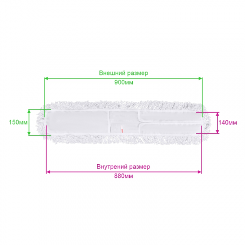 Тип насадки: плоская для цельной рамки. Материал: хлопок. Крепление насадки: карман и завязки. Максимальный объем впитывания: 2100 мл. Размер насадки внешний: 90 х 15 см. Размер насадки внутренний: 88 х 14 см. Длина ворса: 3,5 - 6 см. Цвет: белый. Вес: 430 г. Подходит к швабре: 303077.