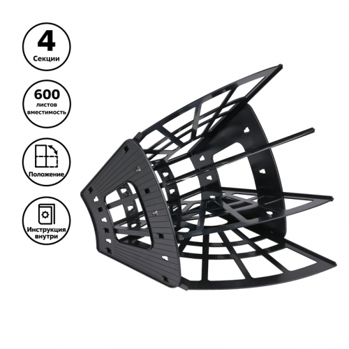 Лоток для бумаг веерный СТАММ "Эконом", 4-х секционный, черный